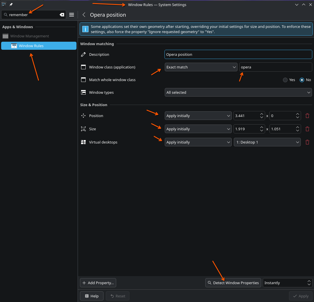 Regras de comportamento de janelas no kde plasma wayland